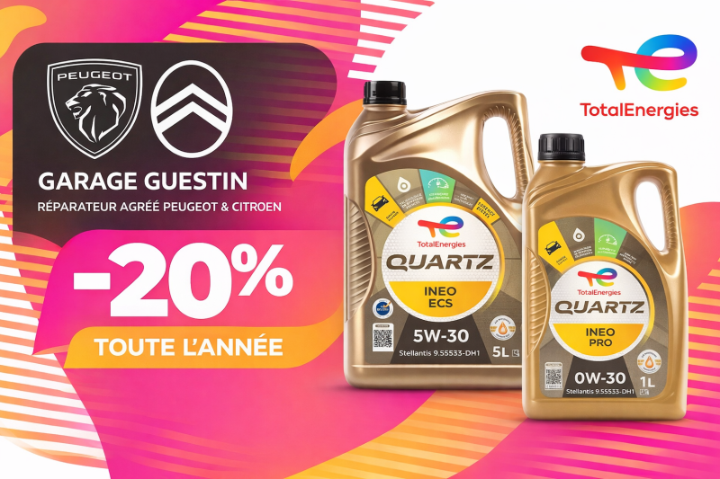 Venez profiter de notre offre avec une promotion de -20% toute l'année sur l'huile Total Energies